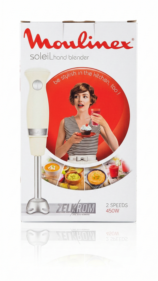 Moulinex Soleil Ivoire, Pied mixeur, 2 vitesses, 2 lames ZELKROM, Ivoire