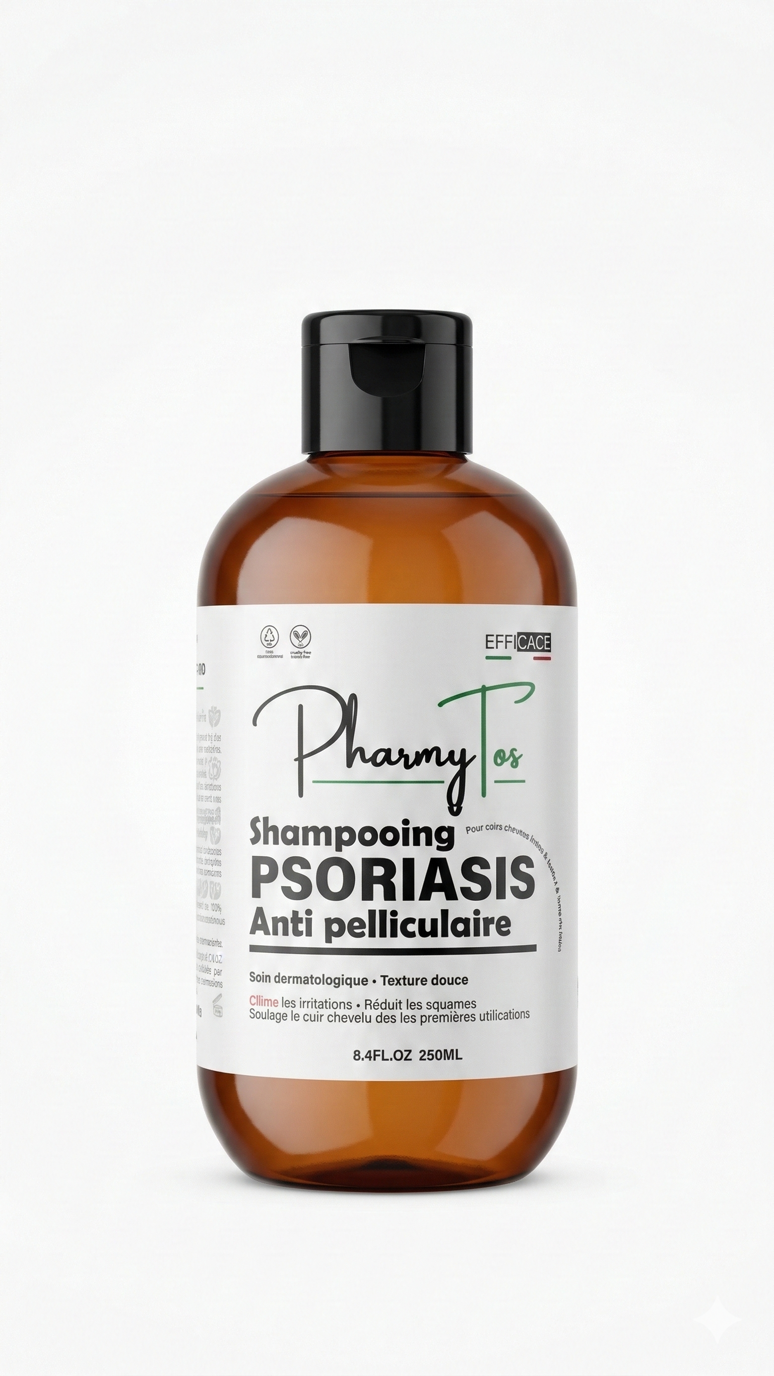 Le PharmyTos Traitement Psoriasis Anti-pelliculaire est un duo dermatologique composé d’un shampooing purifiant et d’une huile traitante spécialement formulés pour les cuirs chevelus sensibles, sujets aux pellicules persistantes, squames et démangeaisons.