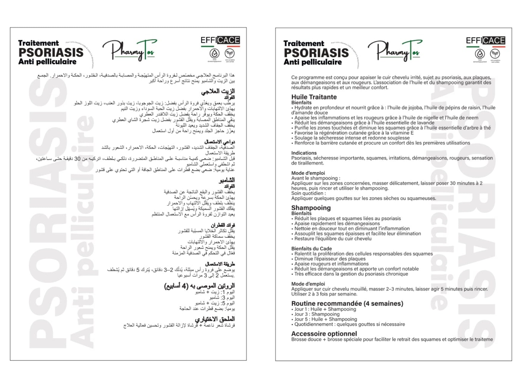 يعد PharmyTos لعلاج الصدفية وقشرة الرأس علاجاً متكاملاً يتكون من شامبو منظف و زيت علاجي مصمم خصيصاً لفروة الرأس الحساسة التي تعاني من القشرة، الحكة والتقشر